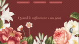 - Thé N°2 / Thé vert au jasmin (Amour secret) : Thé vert (65%), thé vert jasmin (27%), fleurs de sureau, pétales de rose, thé blanc, pêche, arôme naturel de vanille